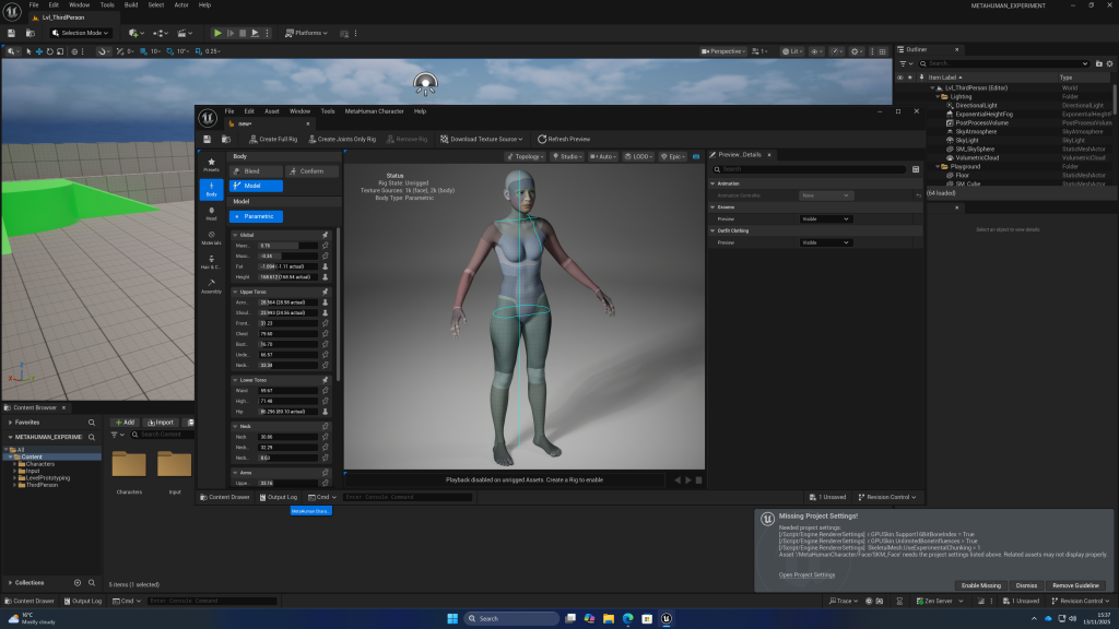 using metahuman to create character base. still not sure if I will use this, but I will use it as a base to model the clothes off of