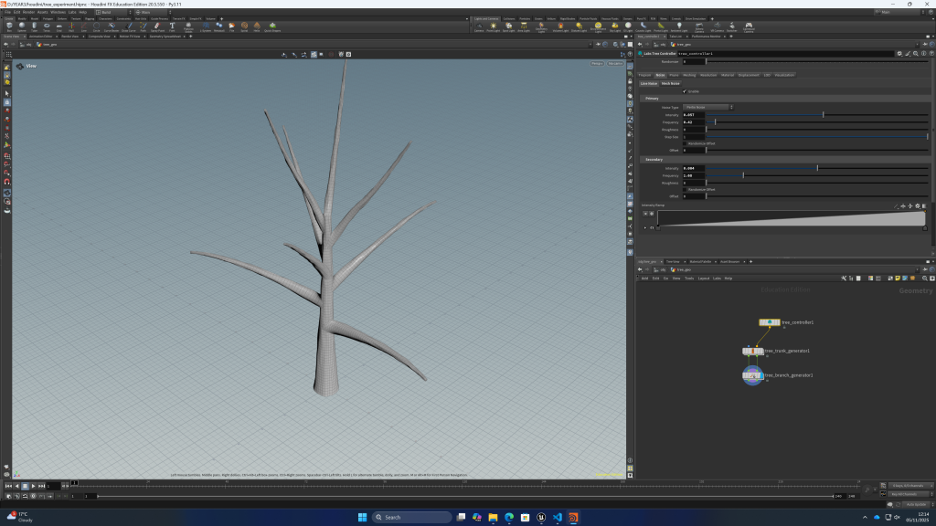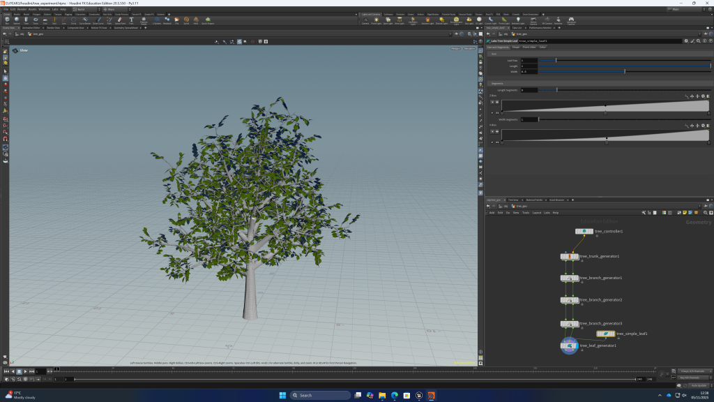 using side fx labs i can quickly make trees for the forest environment, it will be more unique than using quixcel assets and i think i can make the environment more interesting this way