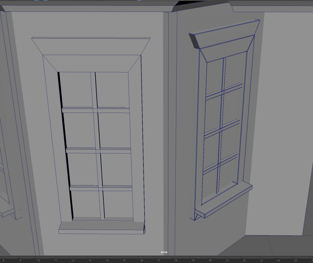 i also looked at some existing modular buildings in unreal engine to see how they were used in versatile ways. I noticed how a lot of things overlap into the mesh, this isn’t noticeable and will save time. I also noticed that most small details are textures with normal maps, no modelled into the mesh