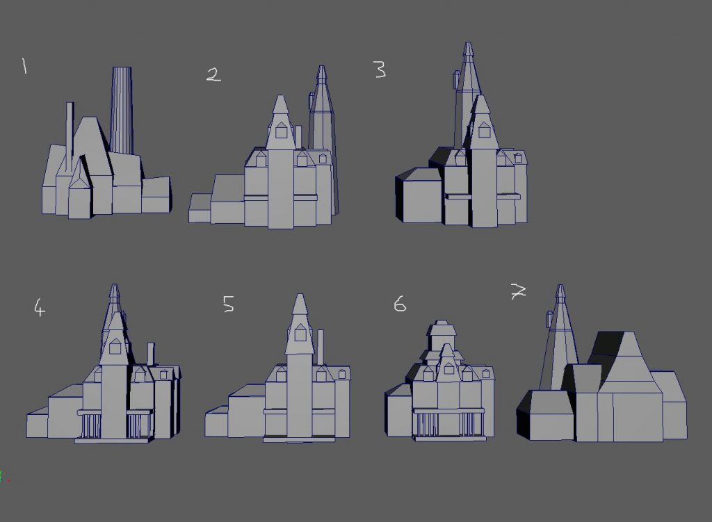 but feedback was to be aware of how shapes intersect and to put variety in the shape language of the models, such as rounding off some corners.